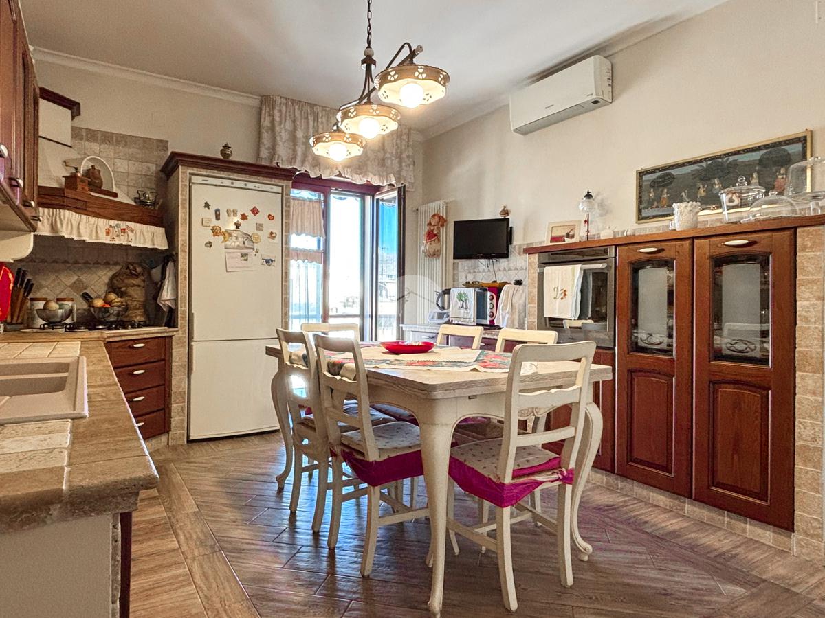 L'immobile si estende su una superficie di 120 mq, garantendo ampi spazi per ogni esigenza e comprende un soggiorno accogliente, una cucina abitabile, due camerette, una camera da letto principale, un pratico ripostiglio e un bagno.