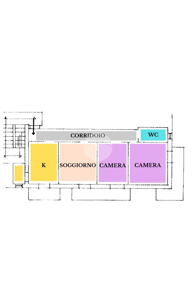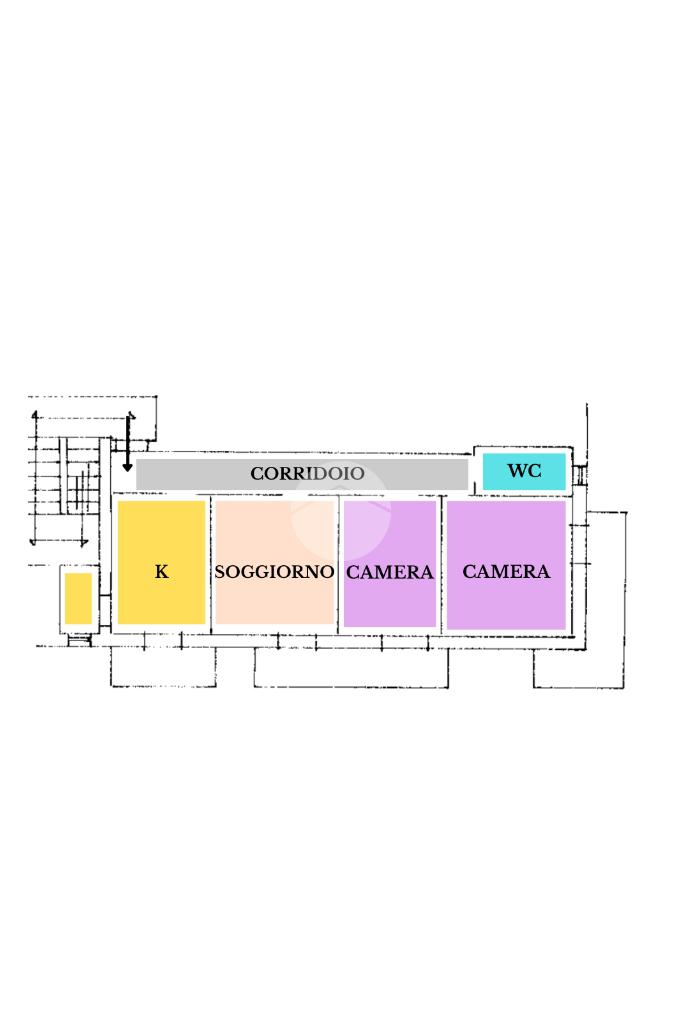L'immobile offre una spaziosa cucina abitabile con angolo cottura, ampio soggiorno, due camere e servizi.