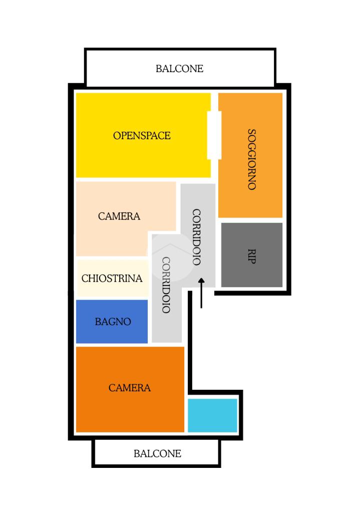 La doppia esposizione garantisce luminosità e ventilazione naturale in tutti i cinque locali.