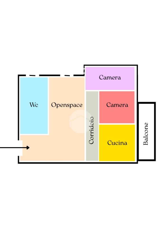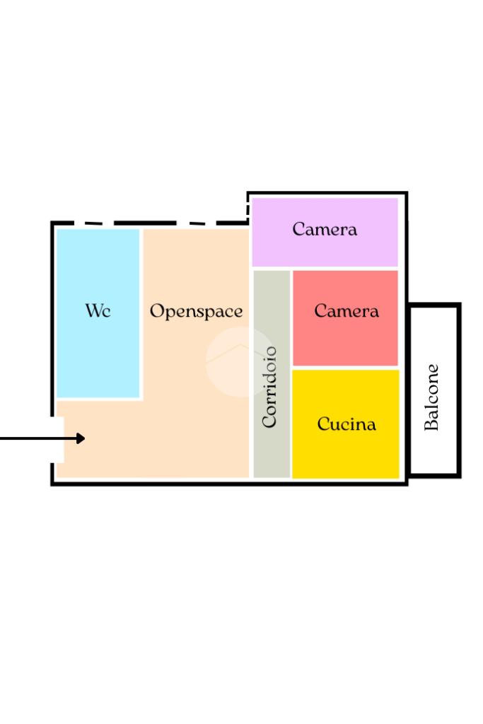 L'unità è organizzata in ampio openspace, cucina abitabile, camera da letto e cameretta, infine il bagno.