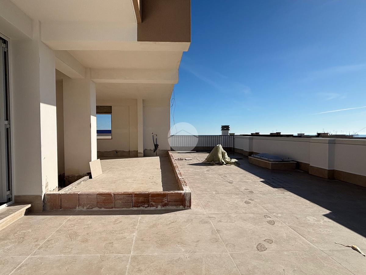 Salendo al piano superiore, si apre a noi una terrazza di proprietà in parte loggiata, caratteristica che regala un ambiente ideale per momenti di relax all'aperto, con vista panoramica mare e monti.