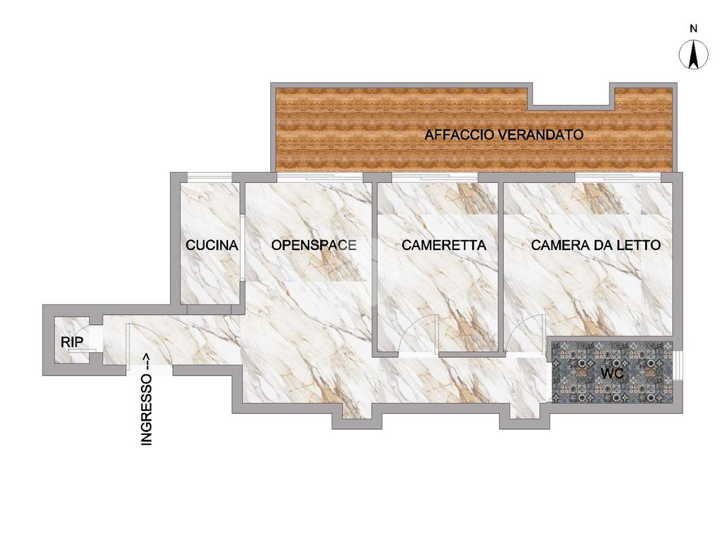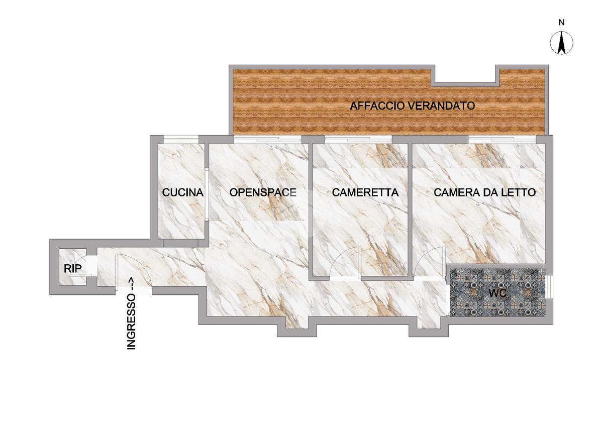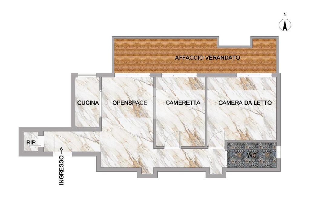 Unico nel suo genere, l'appartamento dispone di un balcone verandato perimetrale, che offre uno spazio esterno riservato.