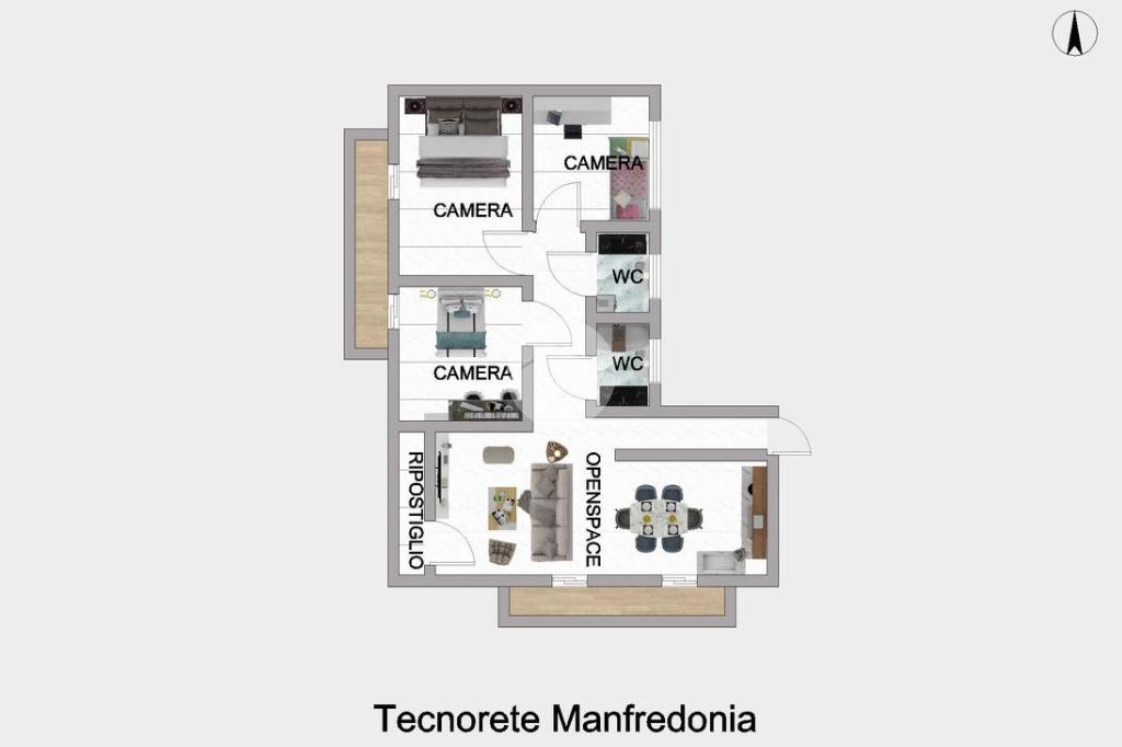 L'immobile offre un'accogliente zona openspace che unisce soggiorno e cucina, ideale per momenti di convivialità. La zona notte comprende tre camere da letto: una matrimoniale e due singole, perfette per famiglie o per chi necessita di uno spazio aggiuntivo per studio o hobby. Sono presenti due bagni, e un comodo ripostiglio, garantendo comfort e praticità.