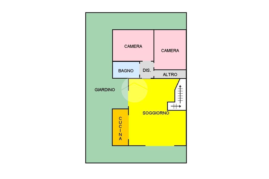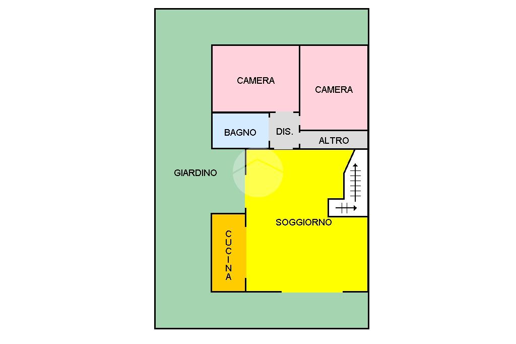 L'unità abitativa si sviluppa maggiormente al pianoterra, con zona giorno e zona notte, oltre ai servizi. Una comoda scalinata interna porta al piano superiore dove invece abbiamo una camera con bagno.