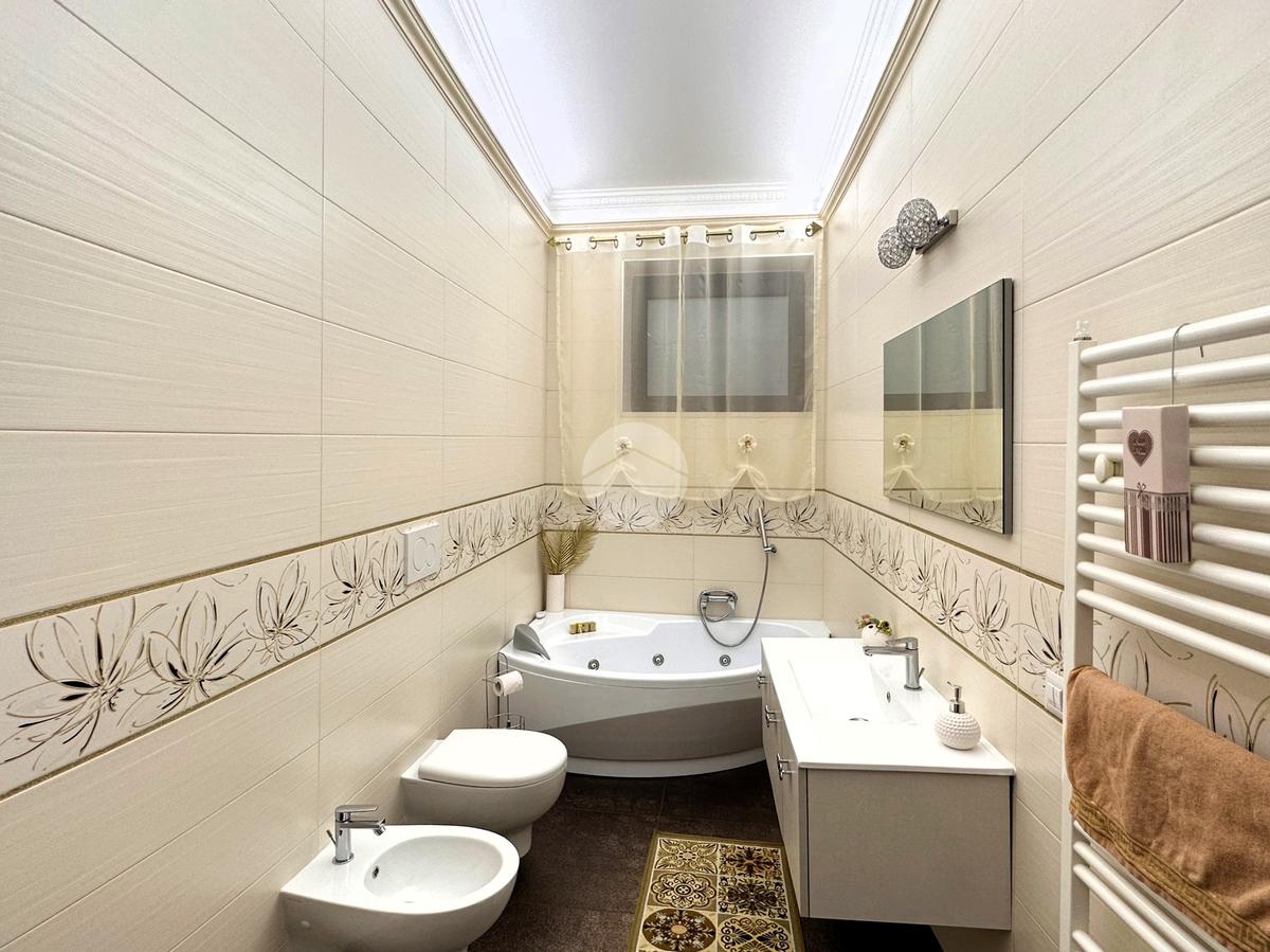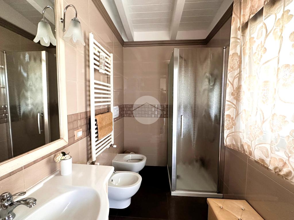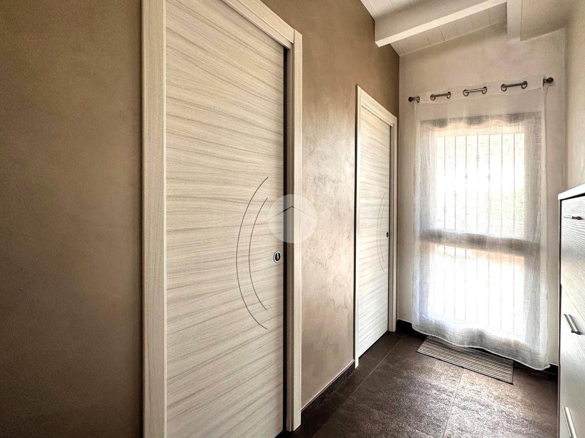 zona piscina; da qui mediante un comodo disimpegno è possibile raggiungere la zona notte, dotata di doppia camera e doppi servizi.