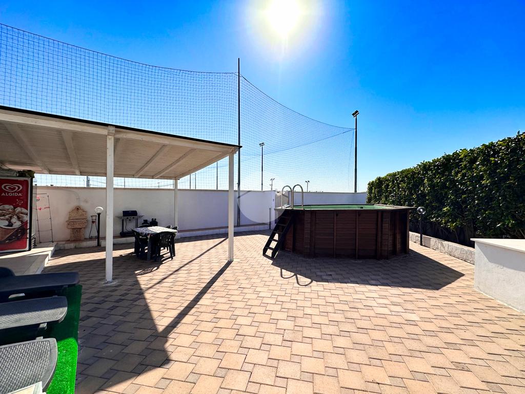 Per completare questa splendida soluzione , è stata installata una confortevole piscina da esterno rivestita in legno, spazio ideale per giornate all'insegna del relax.
